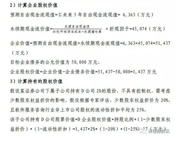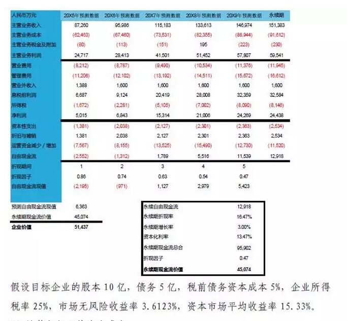 在此基礎上,評估人員進一步考慮貨幣的時間價值、通貨膨脹、以及被評估資產的有關風險,選取了合適的折現率,得到目標公司的股權的公允價值。