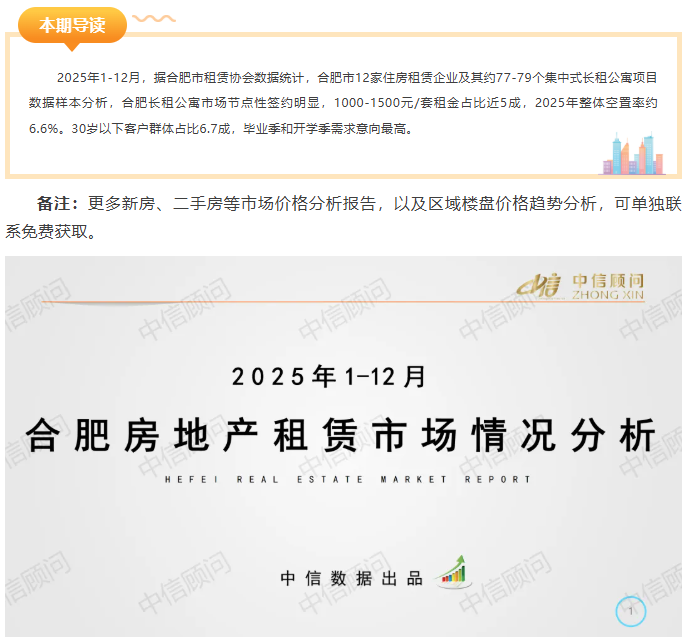 租賃市場(chǎng) | 2025年1-12月,合肥長(zhǎng)租公寓市場(chǎng)空置率約6.6%,市場(chǎng)節(jié)點(diǎn)性簽約明顯